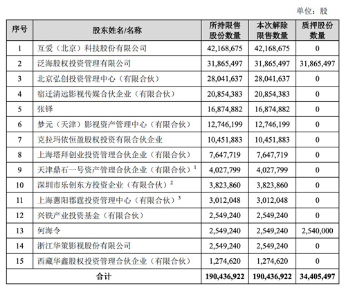 21日晚間,萬達電影公告稱,5月27日,15名股份持有人將有1.90億股股份解除限售,占公司總股份數(shù)的9.1625%。