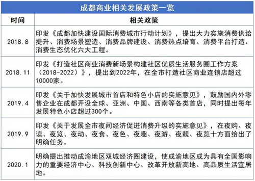 此外,在政策上,成都打造“國際消費中心城市”的目標明確,“成渝地區(qū)雙城經(jīng)濟圈”等各種政策的提出,也為成都商業(yè)地產(chǎn)未來的發(fā)展提供了利好。