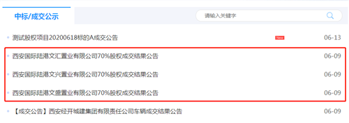 其中,以3.97億元摘得西安國際陸港文匯置業(yè)有限公司70%股權(quán);以4.48億元摘得西安國際陸港文興置業(yè)有限公司70%股權(quán);以3.9億元摘得西安國際陸港文盛置業(yè)有限公司70%股權(quán)。