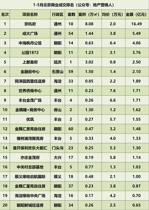 2020年1-5月,北京商業(yè)市場新增供應(yīng)777套,同比上漲164%;成交931套,下降28%;成交面積28.24萬㎡,上漲27%;成交均價23364元/㎡,下降17%;成交金額65.98億元,上漲5%;目前存量11561套,同比下降5%。