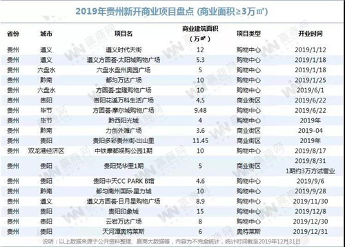 以2019年為例,貴州商業(yè)地產(chǎn)市場上,就迎來了大批商業(yè)項(xiàng)目面世。據(jù)贏商網(wǎng)不完全統(tǒng)計(jì),2019年貴州已開業(yè)商業(yè)項(xiàng)目18個(gè),新增商業(yè)面積141.33萬㎡。