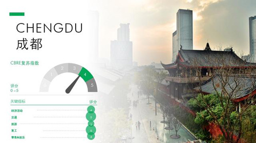 據(jù)了解,“世邦魏理仕復(fù)蘇指數(shù)”對(duì)各城市在經(jīng)濟(jì)活動(dòng)、交通、旅游業(yè)、復(fù)工、零售和娛樂活動(dòng)等12個(gè)方面的恢復(fù)程度進(jìn)行1-5分的評(píng)分(1分代表仍受制于大部分限制措施;5分代表已恢復(fù)到疫前水平),旨在系統(tǒng)性分析全球主要城市的市場恢復(fù)現(xiàn)狀。此次發(fā)布的指數(shù)以今年8月初收集的數(shù)據(jù)為基礎(chǔ),在亞太區(qū)覆蓋23個(gè)主要城市。其細(xì)分指數(shù)顯示成都在交通和復(fù)工方面獲得5分評(píng)分,在旅游業(yè)方面以3分領(lǐng)先亞太其他城市。