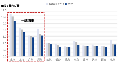 租金近三年持續(xù)下降,一二線城市坪效差距大