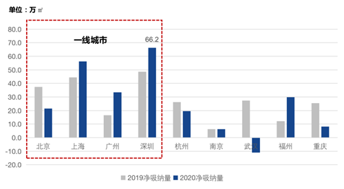 圖:2019-2020重點(diǎn)城市寫(xiě)字樓凈吸納量