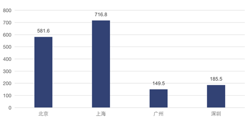 圖:2020一線城市大宗交易成交金額(單位:億元)