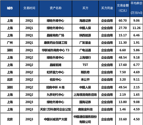 因企業(yè)自用需求產(chǎn)生的交易較往年成倍增長(zhǎng),迎來(lái)高峰: 一方面現(xiàn)金流充足的企業(yè)看準(zhǔn)市場(chǎng)的窗口期以較合理的價(jià)格購(gòu)入優(yōu)質(zhì)資產(chǎn),可以實(shí)現(xiàn)投資長(zhǎng)期的保值增值;另一方面在總部經(jīng)濟(jì)的熱點(diǎn)效應(yīng)下,企業(yè)應(yīng)對(duì)新形勢(shì)調(diào)整發(fā)展戰(zhàn)略,重塑企業(yè)架構(gòu),整合性遷址或擴(kuò)租。