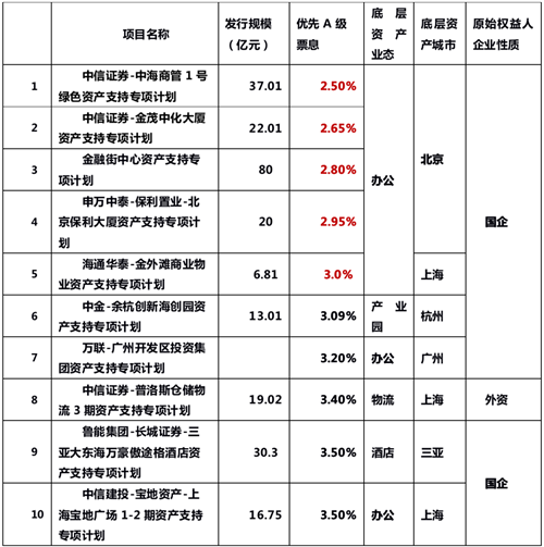 03、一線核心優(yōu)質(zhì)辦公資產(chǎn)ABS最受追捧