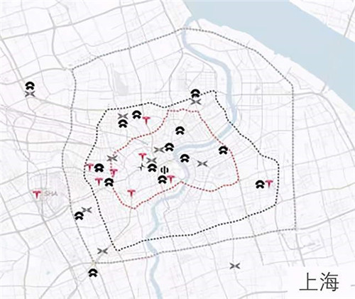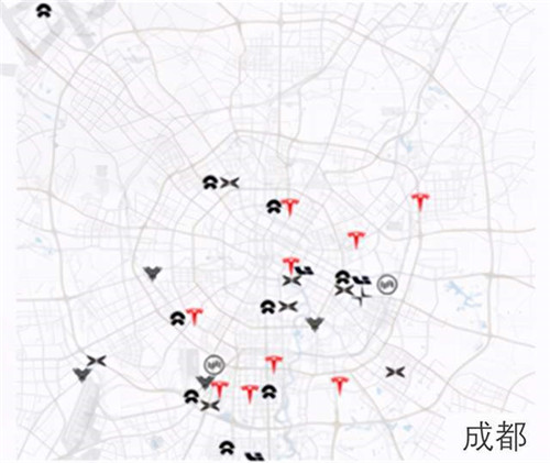 上海、北京、成都主要新能源汽車展廳布局示意圖