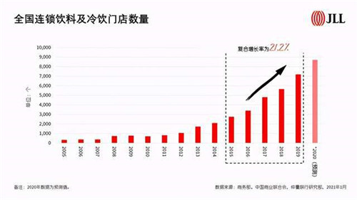 幾年前,由于店鋪數(shù)量有限,在很多城市,喝喜茶、奈雪の茶都需要找黃牛去排隊(duì)。而如今,Sevenbus、茶顏悅色等品牌已經(jīng)悄然崛起,不但頭部品牌快速下沉,占領(lǐng)各級(jí)市場(chǎng),在商業(yè)模式簡單可復(fù)制、進(jìn)入門檻低等因素的推動(dòng)下,越來越多單品價(jià)格在10至20元的品牌加入了市場(chǎng)競(jìng)爭。據(jù)仲量聯(lián)行統(tǒng)計(jì),自2015年起,全國連鎖飲料及冷飲門店數(shù)量的年復(fù)合增長率高達(dá)21.2%。尤其是在去年,高利潤率引發(fā)資本入局以及外賣市場(chǎng)因疫情而火爆更是給茶飲咖啡品牌的急速擴(kuò)張?jiān)偬戆鸦,市?chǎng)競(jìng)爭因此加劇。