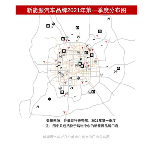 新能源汽車近幾個(gè)季度在北京的門店分布圖
