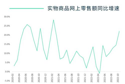 國(guó)家統(tǒng)計(jì)局的數(shù)據(jù)顯示,7、8和9月實(shí)物商品網(wǎng)上零售額加速增長(zhǎng),分別同比上升10.1%、12.8%和14.5%。而根據(jù)今天最新公布的數(shù)據(jù),10月實(shí)物商品網(wǎng)上零售額同比增速進(jìn)一步提升至22.1%,為2021年3月以來(lái)最快增速。