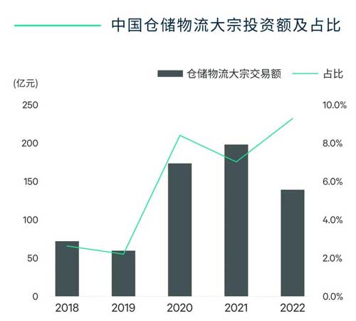 今年前三季度,全國(guó)倉(cāng)儲(chǔ)物流大宗投資累計(jì)約140億元,基本與2021年同期相當(dāng),而在全部大宗交易額占比則達(dá)到創(chuàng)新高的9.3%。除了京津冀、長(zhǎng)三角和大灣區(qū)三大沿海都市圈的投資機(jī)會(huì)繼續(xù)受到投資者重點(diǎn)關(guān)注之外,今年CBRE投資及資本市場(chǎng)部 | 產(chǎn)業(yè)地產(chǎn)團(tuán)隊(duì)促成的成都和武漢近50萬(wàn)平方米的高品質(zhì)物流資產(chǎn)包交易標(biāo)志著中國(guó)倉(cāng)儲(chǔ)物流領(lǐng)域投資正在開啟更廣闊的空間。