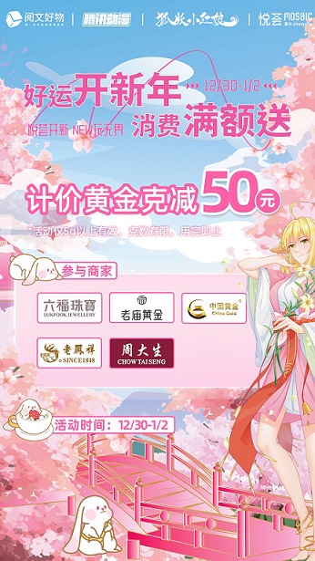 黃金作為一種穩(wěn)定的保值投資產品一直備受廣大消費者青睞,年輕群體偏愛佩戴各類黃金飾品,此次大促悅薈聯合多家珠寶品牌參與,黃金克減高達50元,性價比十足。