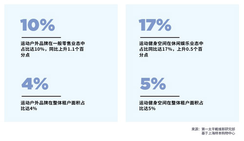 而包括各類健身房、瑜伽館、射箭館、舞蹈教室等泛運(yùn)動(dòng)類空間同樣表現(xiàn)亮眼,其在休閑娛樂大類的面積占比達(dá)17%,同比上升0.5個(gè)百分點(diǎn)。與運(yùn)動(dòng)相關(guān)的空間在商場(chǎng)內(nèi)已不僅僅是作為配套設(shè)施存在,更日漸成為很多項(xiàng)目的"流量抓手"。從健身房到餐飲,更多空間通過融入運(yùn)動(dòng)體驗(yàn),或作為運(yùn)動(dòng)相關(guān)服務(wù),為消費(fèi)者帶來新穎內(nèi)容。