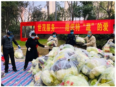 此外,為了解決買菜難、取外賣、取快遞這些“宅家剛需”需求,世茂服務(wù)通過旗下科技公司世茂物聯(lián)研發(fā)上線了“鮮蔬到家”“跑腿服務(wù)”等線上服務(wù),將業(yè)主所需的蔬菜、外賣、快遞由物業(yè)管家送到家門口,有效降低了業(yè)主與外來人員接觸帶來的病毒傳播風(fēng)險。2月5日,為了讓武漢的業(yè)主過一個安心的元宵節(jié),在漢4個小區(qū)的業(yè)主和住戶收到了物業(yè)管家送來的76噸新鮮愛心蔬菜,平均每戶達(dá)18斤。連夜送菜的動作,讓業(yè)主感動地直言“世茂的管家太貼心了,太辛苦了!”