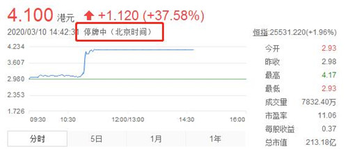3月10日午間,SOHO中國股價(jià)急速拉升,在上漲37.58%后暫停交易,目前SOHO中國已停牌。