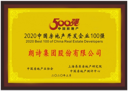 2020朗詩(shī)集團(tuán)百?gòu)?qiáng)獎(jiǎng)牌