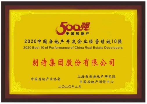 2020朗詩(shī)集團(tuán)開發(fā)企業(yè)經(jīng)營(yíng)績(jī)效10強(qiáng)獎(jiǎng)牌