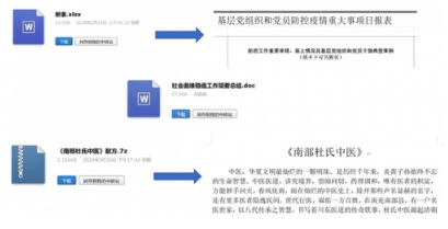 這些可疑文件有的是模仿政府工作文件命名的表格如“基層黨組織和黨員防空疫情重大事項(xiàng)日?qǐng)?bào)表”,并且打著“防疫”的口號(hào)或“中醫(yī)藥秘方”為標(biāo)題的內(nèi)容。據(jù)微步在線的技術(shù)人員稱(chēng),這些都是網(wǎng)絡(luò)攻擊的誘餌文件。