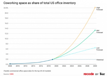 與此同時(shí),美國(guó)聯(lián)合工作空間也保持了高速增長(zhǎng),并沒(méi)有因在線辦公技術(shù)的發(fā)展和遠(yuǎn)程辦公者的增多而萎縮。