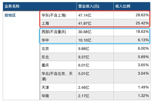 這一點在財報中也得到了體現(xiàn)。全部自營的上海地區(qū)、多達(dá)105家委管的華東地區(qū)合計貢獻(xiàn)了超過50%的收入。另外,委管數(shù)量較多的西部和華中地區(qū)合計收入占比近25%。