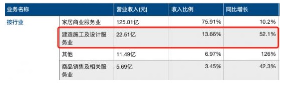 除了排名第一的家居商業(yè)服務(wù)業(yè),紅星美凱龍的建造施工及設(shè)計服務(wù)業(yè)已經(jīng)悄然躍居第二位,收入同比增加52.1%。