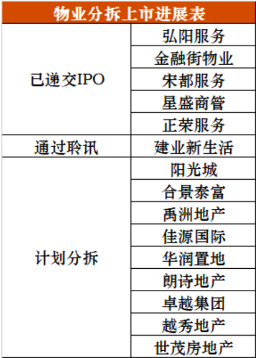 截至2020年5月底,正榮服務(wù)、弘陽服務(wù)、金融街物業(yè)、宋都服務(wù)、星盛商管等5家企業(yè)已經(jīng)遞交IPO;陽光城、合景泰富、華潤(rùn)置地、世茂房地產(chǎn)、金科股份、越秀地產(chǎn)等多家企業(yè)相繼宣布計(jì)劃分拆物管業(yè)務(wù)上市。