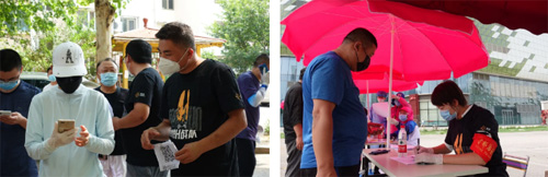 本次支援社區(qū)的五家企業(yè)志愿者們,主要負責核酸檢測點位的登記、人員疏導(dǎo)、解答居民的疑問……為有序檢測提供后勤保障,雖然烈日當頭讓人汗流浹背,但他們依然克服重重困難,堅守在第一線。