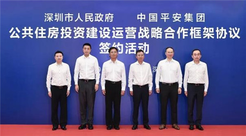 6月4日,深圳市政府、中國(guó)平安保險(xiǎn)(集團(tuán))股份有限公司(以下簡(jiǎn)稱“中國(guó)平安”)舉行《公共住房投資建設(shè)運(yùn)營(yíng)戰(zhàn)略合作框架協(xié)議》簽約儀式。深圳市委常委、市政府黨組成員楊洪,副秘書長(zhǎng)徐松明,中國(guó)平安總經(jīng)理、聯(lián)席首席執(zhí)行官謝永林,首席投資執(zhí)行官陳德賢,華夏幸;鶚I(yè)股份有限公司(以下簡(jiǎn)稱“華夏幸!)聯(lián)席董事長(zhǎng)、首席執(zhí)行官吳向東等出席儀式。