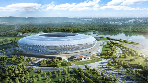 承擔(dān)大運(yùn)會(huì)開(kāi)閉幕式的4萬(wàn)座甲級(jí)主體育場(chǎng)建筑面積約12萬(wàn)平米,是全國(guó)為數(shù)不多的由本土設(shè)計(jì)師原創(chuàng)設(shè)計(jì)的正圓形建筑作品,由頂部玻璃屋面及內(nèi)側(cè)吊頂膜、肩部銀色鋁板、立面弧形銀色格柵組成正圓形“飛碟”造形。