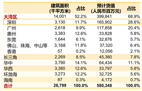 大灣區(qū)作為佳兆業(yè)多年來深耕布局的重要區(qū)域,灣區(qū)土儲占到了總土儲備面積的52%,貨值近4000億,其中深圳、廣州兩大核心城市占總土儲貨值約50%。
