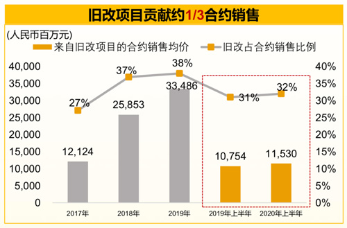 佳兆業(yè)首次在其財(cái)報(bào)中體現(xiàn),2020年上半年合約銷售金額的360億元,舊改項(xiàng)目貢獻(xiàn)銷售超三分之一,成為業(yè)績增長的一大亮點(diǎn)。