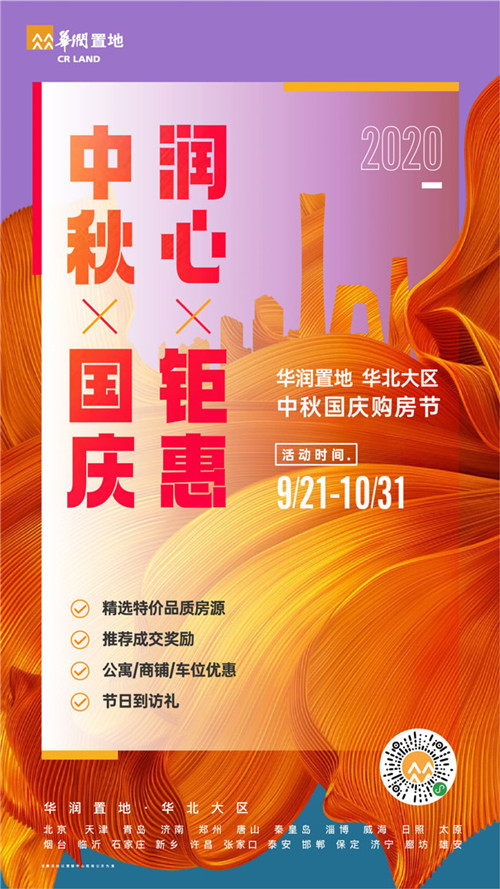房訊網(wǎng)訊 在國慶、中秋雙節(jié)來臨之際,華潤置地推出整合營銷活動,華北大區(qū)22城市40盤,以“精選特價品質(zhì)房源,推薦成交獎勵,公寓、商鋪、車位優(yōu)惠,節(jié)日到訪禮”。四重禮遇,歡度雙節(jié),給家一個更優(yōu)惠的方案。
