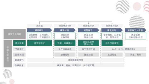 過去一年,在雙碳目標(biāo)的背景下,高能耗、高排放的房地產(chǎn)行業(yè)迎來了一場綠色大考。建筑行業(yè)是實現(xiàn)碳中和的重要場景,根據(jù)中國建筑節(jié)能協(xié)會發(fā)布的《中國建筑能耗研究報告(2020)》,2018年全國建筑全過程碳排放總量49.3億噸,占全國碳排放比重的51.3%,其中建筑生產(chǎn)階段碳排放27.3億噸,建筑運行階段21.1億噸。未來,建筑領(lǐng)域全產(chǎn)業(yè)鏈將發(fā)生巨大變革,減碳技術(shù)及材料的大范圍推廣也將衍生出新的投資機會。