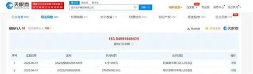 天眼查APP顯示,6月13日,恒大地產(chǎn)集團(tuán)有限公司新增兩則被執(zhí)行人信息,執(zhí)行標(biāo)的分別為2.78億元、478萬元,執(zhí)行法院分別為鄂爾多斯市中級(jí)人民法院、防城港市港口區(qū)人民法院。截至目前,該公司累計(jì)被執(zhí)行逾183億元。