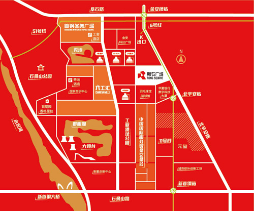 融石廣場所在的新首鋼高端產(chǎn)業(yè)綜合服務區(qū)(簡稱首鋼園)位于長安街西延長線與永定河綠色生態(tài)走廊交匯處,占地 7.8 平方公里,規(guī)模 690 余萬平方米。