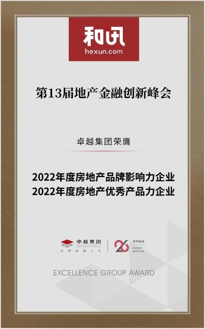 卓越集團憑借其強大的產(chǎn)品力和影響力,榮膺“2022年度房地產(chǎn)品牌影響力企業(yè)”、“2022年度房地產(chǎn)優(yōu)秀產(chǎn)品力企業(yè)”兩項大獎,而面對復(fù)雜多變的市場環(huán)境,卓越集團還將繼續(xù)秉持“追求卓越、不斷超越”的初心,全面塑造產(chǎn)品的核心競爭力,持續(xù)踐行企業(yè)社會責任感,為城市生長、居民美好生活創(chuàng)造更多價值。