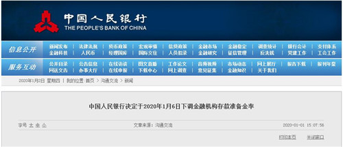 房訊網(wǎng)訊 中國人民銀行決定于2020年1月6日下調(diào)金融機構存款準備金率0.5個百分點(不含財務公司、金融租賃公司和汽車金融公司)。