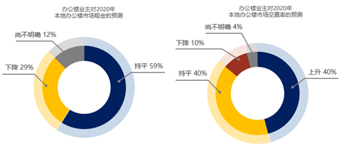 在受訪辦公樓業(yè)主中,有近六成的辦公樓業(yè)主認為租金將保持穩(wěn)定,而29%則預(yù)計租金將會面臨下行壓力。在空置率方面,40%的辦公樓業(yè)主認為空置率不會受到影響,然而40%預(yù)期空置率將小幅上升。