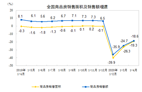 房訊網(wǎng)訊 據(jù)國(guó)家統(tǒng)計(jì)局發(fā)布的1-4月份全國(guó)房地產(chǎn)開(kāi)發(fā)投資和銷(xiāo)售情況數(shù)據(jù),1-4月份,商品房銷(xiāo)售面積33973萬(wàn)平方米,同比下降19.3%,降幅比1—3月份收窄7.0個(gè)百分點(diǎn)。其中,住宅銷(xiāo)售面積下降18.7%,辦公樓銷(xiāo)售面積下降32.0%,商業(yè)營(yíng)業(yè)用房銷(xiāo)售面積下降29.1%。