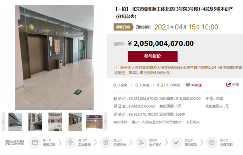 房訊網(wǎng)訊 據(jù)北京產(chǎn)權(quán)交易所披露,北京市朝陽(yáng)區(qū)工體北路13號(hào)院3號(hào)樓1-4層及5幢不動(dòng)產(chǎn)(世茂工三)將于4月15日在北交互聯(lián)網(wǎng)絡(luò)司法拍賣平臺(tái)上進(jìn)行公開拍賣,評(píng)估價(jià)為29.29億元,起拍價(jià)為20.5億元。