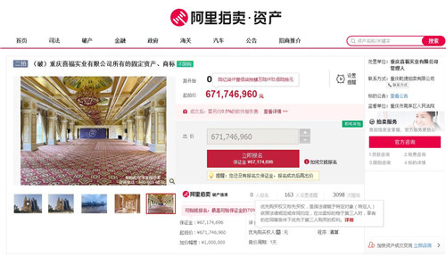 公告顯示,標(biāo)的物評估價(jià)839,683,700元,起拍價(jià)671,746,960元,保證金671,746,96元,加價(jià)幅度1000000元,起拍價(jià)、成交價(jià)均不包含包括任何稅費(fèi)價(jià)、淘寶平臺軟件服務(wù)費(fèi)等其他費(fèi)用。