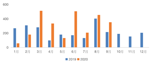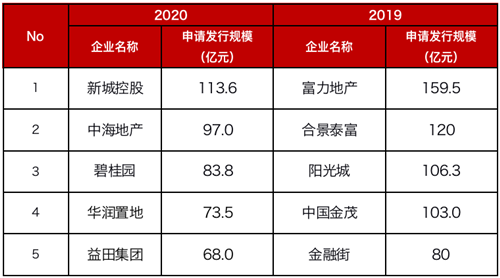 房企新申請(qǐng)ABS發(fā)行規(guī)模(億元)2019VS2020