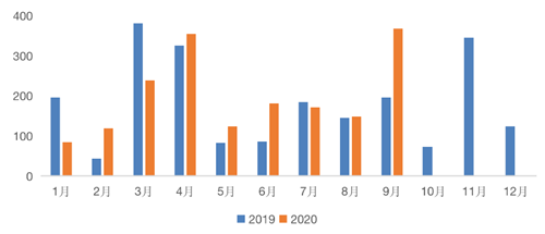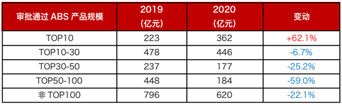 房企ABS審批通過(guò)規(guī)模(億元)2019VS2020