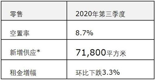 備注:優(yōu)質(zhì)零售地產(chǎn)指市區(qū)市場(chǎng)。*新增供應(yīng)量涵蓋郊區(qū)市場(chǎng)的新增供應(yīng)。