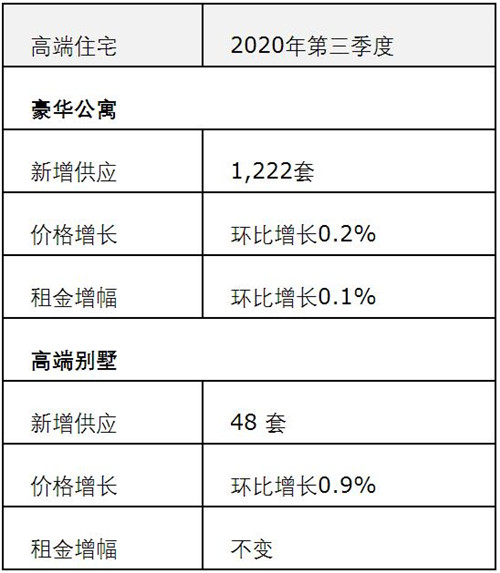 隨著銷(xiāo)售市場(chǎng)勢(shì)頭持續(xù)強(qiáng)勁,豪華公寓售價(jià)企穩(wěn)微升,環(huán)比增長(zhǎng)0.2%。多個(gè)著名的豪華公寓項(xiàng)目本季度售價(jià)環(huán)比提高5.1%。買(mǎi)家重回市場(chǎng)為開(kāi)發(fā)商帶來(lái)加推新盤(pán)的信心,本季度共有1,222套豪華公寓和48套高端別墅獲得預(yù)售資格,較二季度的217套有明顯增長(zhǎng)。在較大的償債壓力下,一些開(kāi)發(fā)商加速項(xiàng)目開(kāi)盤(pán)以期穩(wěn)定現(xiàn)金流!坝捎谝恍╅_(kāi)發(fā)商須積極準(zhǔn)備應(yīng)對(duì)2021年融資渠道的進(jìn)一步收緊和受限,加速銷(xiāo)售去化預(yù)計(jì)會(huì)在很大程度上成為開(kāi)發(fā)商年底前的首要任務(wù),” 米陽(yáng)表示,“傳統(tǒng)的十月銷(xiāo)售旺季或?qū)浀娩N(xiāo)量高峰,而年末交易量可能將回升至2019年水平或更高!