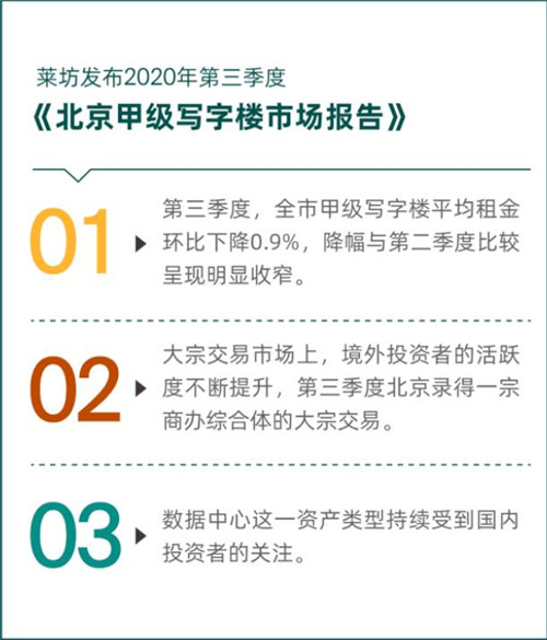 萊坊董事、上海和北京研究及咨詢部主管楊悅晨表示,第三季度,隨著經濟活動的不斷增多,北京甲級寫字樓市場也逐步回暖,凈吸納量增長約一倍,且租金降幅環(huán)比收窄。金融行業(yè)租賃需求保持穩(wěn)定,互聯(lián)網、高科技行業(yè)表現(xiàn)活躍。