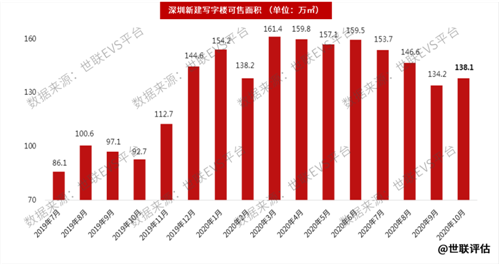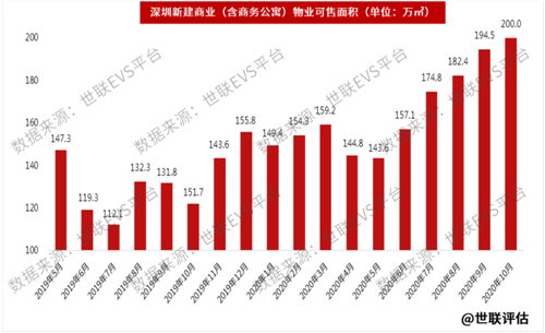 10月份,深圳新建商業(yè)物業(yè)(以商務(wù)公寓為主)可售面積為200.0萬平方米,環(huán)比上升2.8%,連續(xù)5個月上揚(yáng),再創(chuàng)近期新高。本指標(biāo)顯示庫存壓力依然較大。