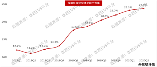 深圳商業(yè)性辦公用地供應(yīng)過剩,近年寫字樓供應(yīng)量足以滿足未來十年的需求,空置率及租金下跌幅度都位居四大一線城市之首。