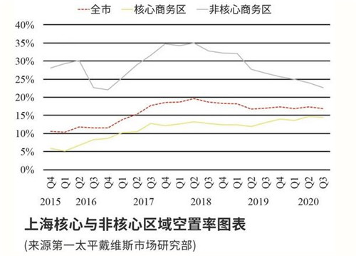 一些成熟餐飲品牌開始回歸核心商圈,主流服飾品牌也有新店開出。核心商圈空置率下降幅度更為明顯,其中南京東路及淮海中路商圈改善最為顯著,分別下降2.8和1.4個百分點。